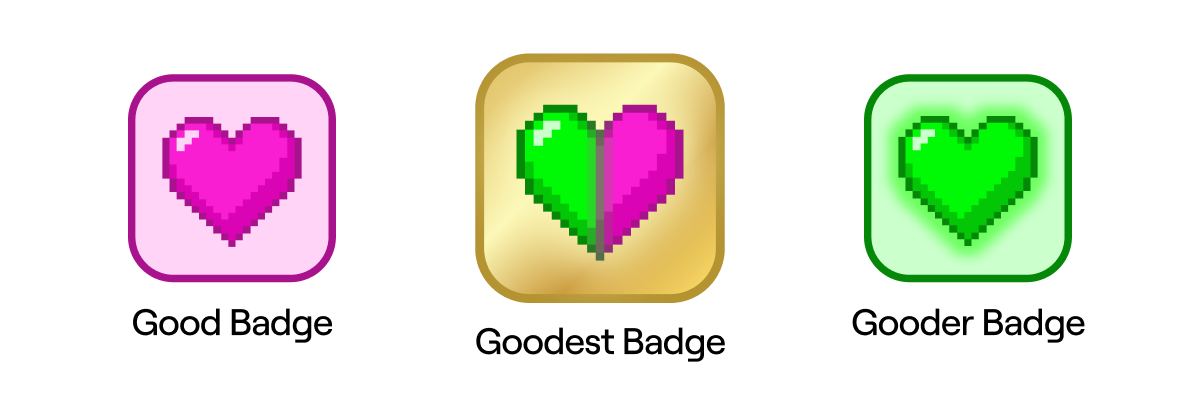 - Donate $5, $50, and $100 USD (or other currency equivalents) to earn these three unique badges